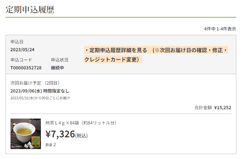 2.定期申込履歴